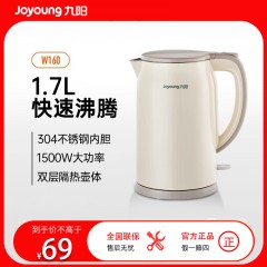 九阳(Joyoung)电热水壶家用1.7L大容量304不锈钢内胆无缝内胆双层防烫烧水壶自动断电开水煲K17FD-W160