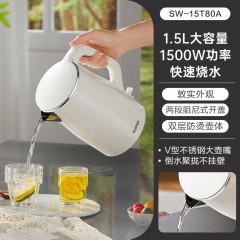 苏泊尔(SUPOR)电水壶烧水壶 1.5L容量 304不锈钢热水壶电热水壶 双层防烫全钢无缝开水壶 SW-15T80A