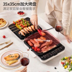 荣事达电饼铛加深加大电烤锅家用多功能电烧烤炉烤肉机烧烤一体双面无烟电烧烤盘RS-B195LQ