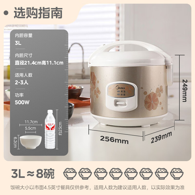美的(Midea)电饭煲MB-WYJ301家用机械煮饭锅3升大容量煮饭自动保温不粘内胆电饭锅