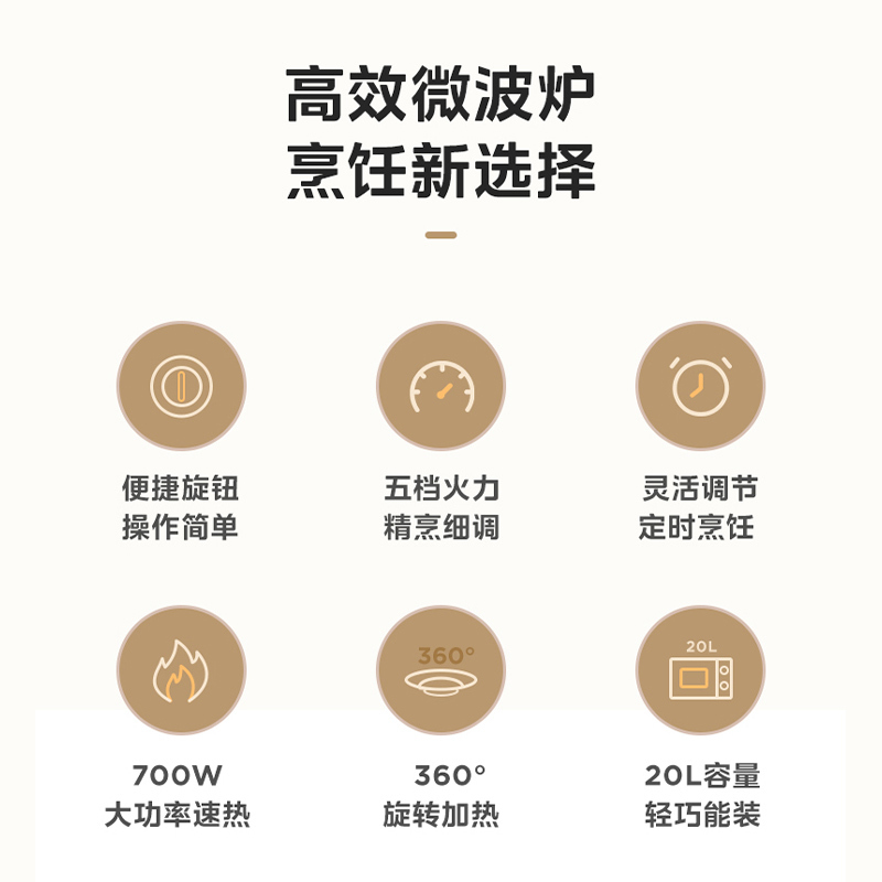 美的 (Midea)微波炉 700W微波 高效加热 五档火力 专火快速解冻 转盘加热 M20C