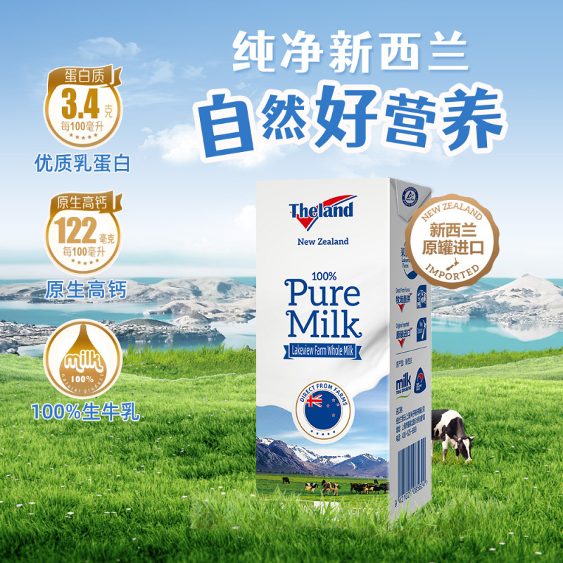 商品名称:纽仕兰新西兰进口全脂高钙蛋白纯牛奶3.4g蛋白250ml*24盒学生